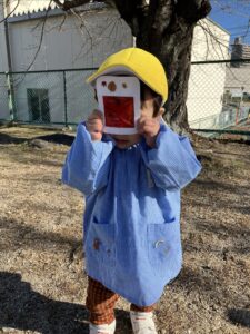 自分たちで作った手作りのスマホ📱からじーっと外の景色を覗くお友達の姿も👀✨