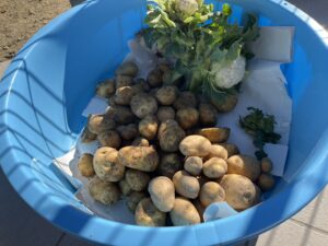 今日は、畑にジャガイモや冬の野菜の収穫に行ってきました