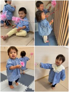 みんなにはたきを渡すとフリフリ🌟ステッキを持った小さな妖精さんたちが現れました🧚😆