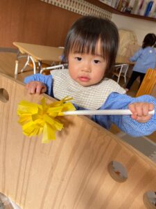 手作りのはたきを使って保育室を綺麗にしました✨