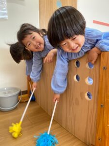 ゴミや汚れがないか保育室を駆け回って探している姿がとても可愛かったです💕