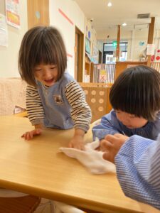 2歳児さんは拭き掃除もしてくれました♪