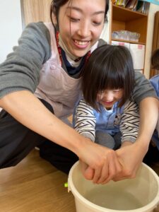 待っているお友だちも一緒になって「ぺったんこ!ぺったんこ!」と言ってくれました🥰