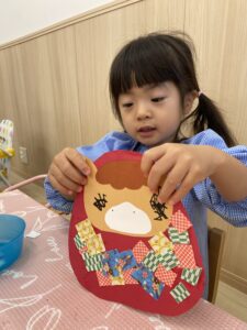 好きな折り紙を選んでだるまさんを可愛くしています💕