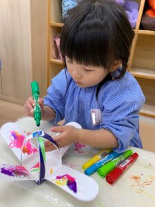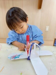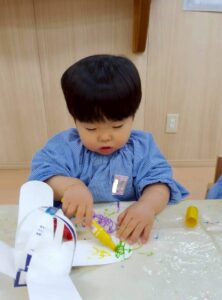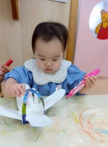 0、1歳児クラスのお友だちも自分たちで色んな色を使って描くことができました🌈
