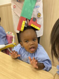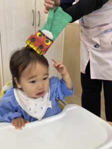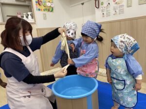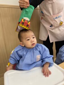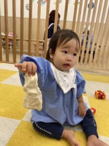 0歳児さんたちも三角巾を付けてみました💕