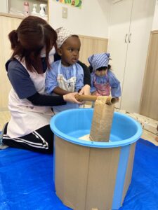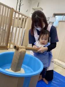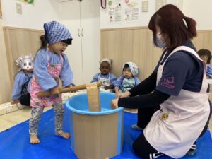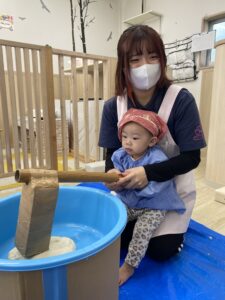 お餅つきの歌を歌いながらとても上手につくことができました👏