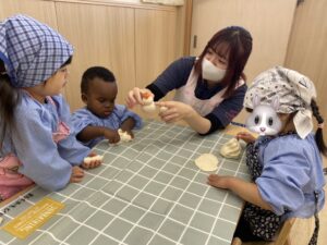 「私は小さいお餅を作るね!」「下のシート作ってあげるね〜😊」とそれぞれ役割を決めて一生懸命作っていましたよ。