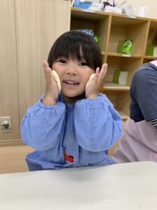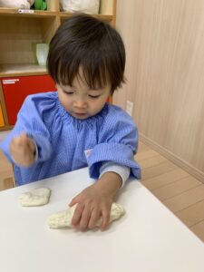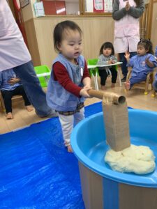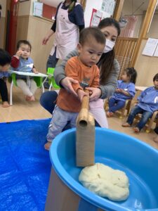 皆んなでおもちつきを楽しんだ後は、おもちの小麦粉粘土で遊びました。