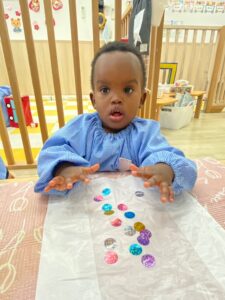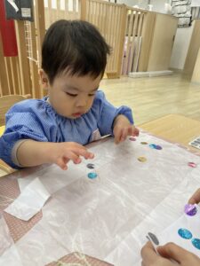 1歳児さんはキラキラシールを貼りました🤩
