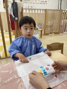 0、1歳児さんたちは福笑いを楽しみましたよ🌟