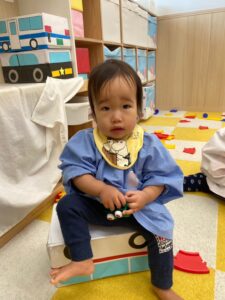 0歳児さん、パーツを一つひとつじーっと見つめながら置いていました。