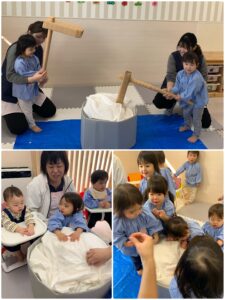 もちつきごっこの様子はこちら💁♀️🎶杵を持ってぺったんぺったんしました🥰