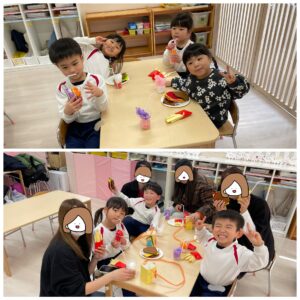 その後は、保育園のおやつを一緒に食べたり🥞