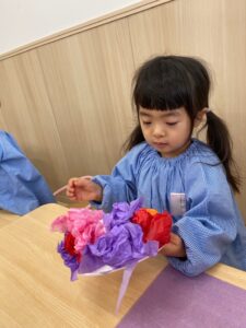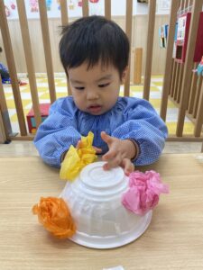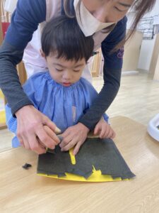 その次は画用紙に貼ってある花紙をビリビリと破るゲームをしました。