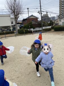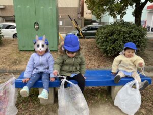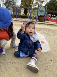 「凧揚げ楽しみ〜!」とお散歩に出かける前からワクワクしている子どもたちです👦