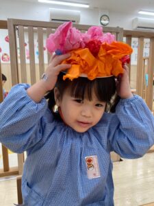 「私は紫色🤭」「かわいい鬼の帽子にしようかな🤔」とワクワクしている子どもたちです✨