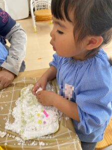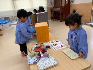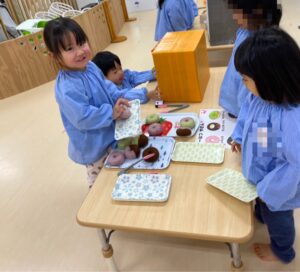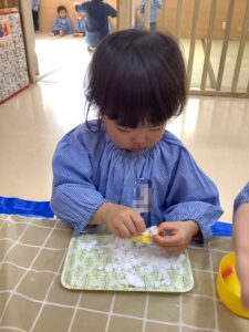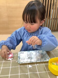 最初はトングで乗せるのに苦戦していた2歳児さんでしたが