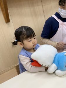 嬉しそうにタッチしたり、ギューっと抱っこする子もいれば、いつもと違う状況にドキドキしたり、固まったりしてしまう子もいたり…。いろんな姿が見られましたよ🤭