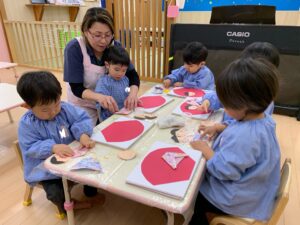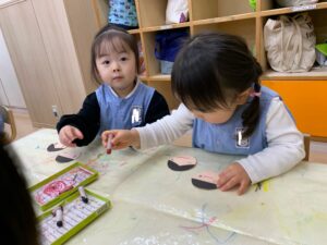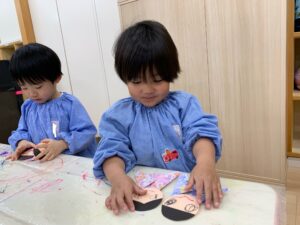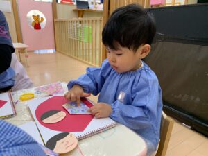 2歳児さんは手指が器用になり、いろいろな製作を楽しむ姿が見られます😊