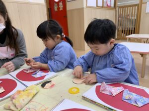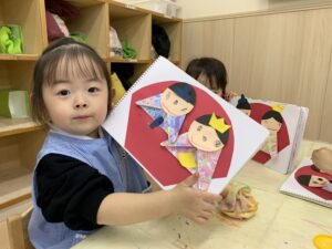 🎎その頃2歳児さんは、お部屋でお雛様の製作をしました。
