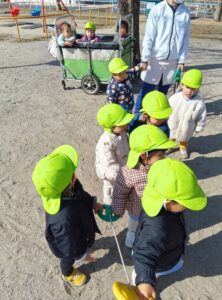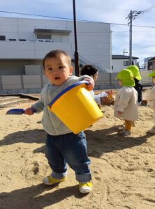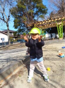 砂の中から、どんぐりや石を拾って集めたり、砂のケーキを作ったりして楽しみました😆