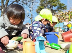 ☀️公園では、砂遊びに夢中な子どもたちです。