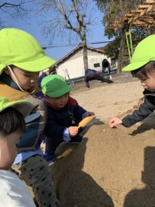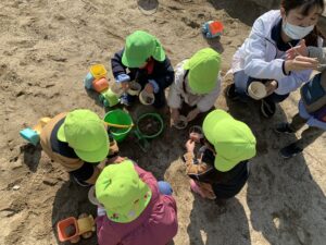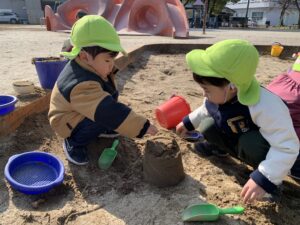 お砂場での遊び方もぐんぐん成長していて、お友だちと協力しあって遊ぶ姿がよく見られるようになりました🥰