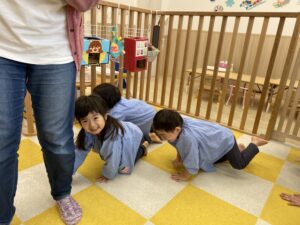 その後は羊になりきって、「メリーさんの羊」の歌に合わせてハイハイします🐏