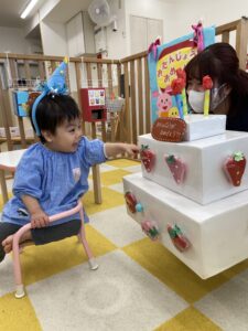 大きなケーキを持ってくると指をさして大喜びでした💕