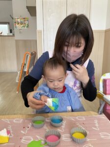0歳児さん、染め紙に挑戦✨