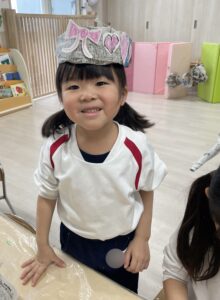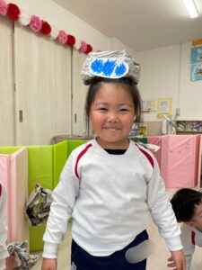 完成した帽子を被って嬉しそうなばなな組さん!