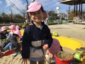 みんなでお山を作ったり、バケツいっぱいに入れてケーキを作ったり🎂