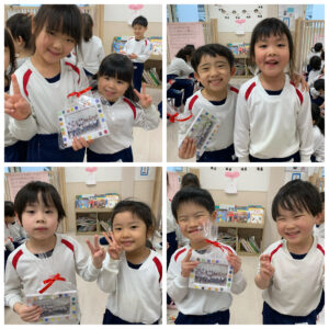 公園での集団遊びを存分に楽しんだ後は、園に戻ってプレゼントを渡しました!🎀