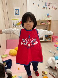 エプロンをつけておままごとを楽しむ姿がとっても可愛いです🤭💕