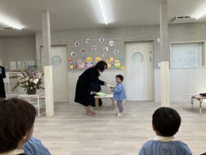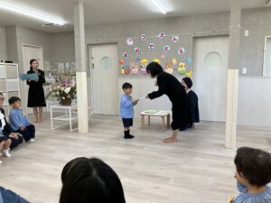 いつもとは違う雰囲気に緊張気味な子供達でしたが卒園証書授与では、みんなの前に出て保育証書を受け取ることができました✨✨