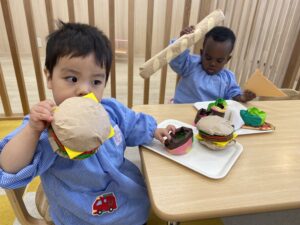 0、1歳児さん達もトレイをもって「これください!」と指をさして注文していましたよ😊